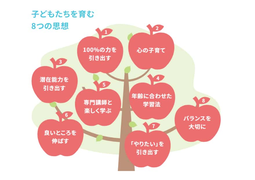 子どもは本来、好奇心旺盛で新しいこと・学ぶことが大好きです。コペルは、「脳の臨界期」といわれる幼児期に脳全体に数多くの刺激を与えることで、IQ(知性)・EQ(心の知性)・SQ(社会的知性)をバランスよく育む幼児教室です。「8つの思想」を軸に子どもたちの自尊感情を育み、一人ひとりの潜在能力を引き出します。